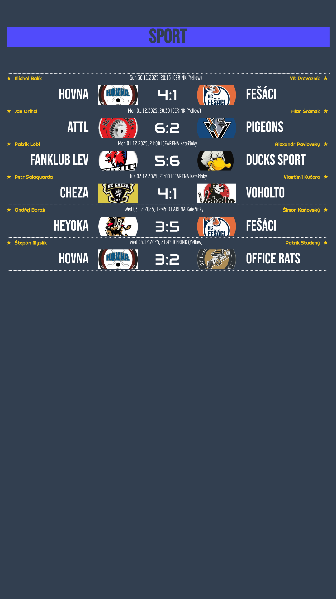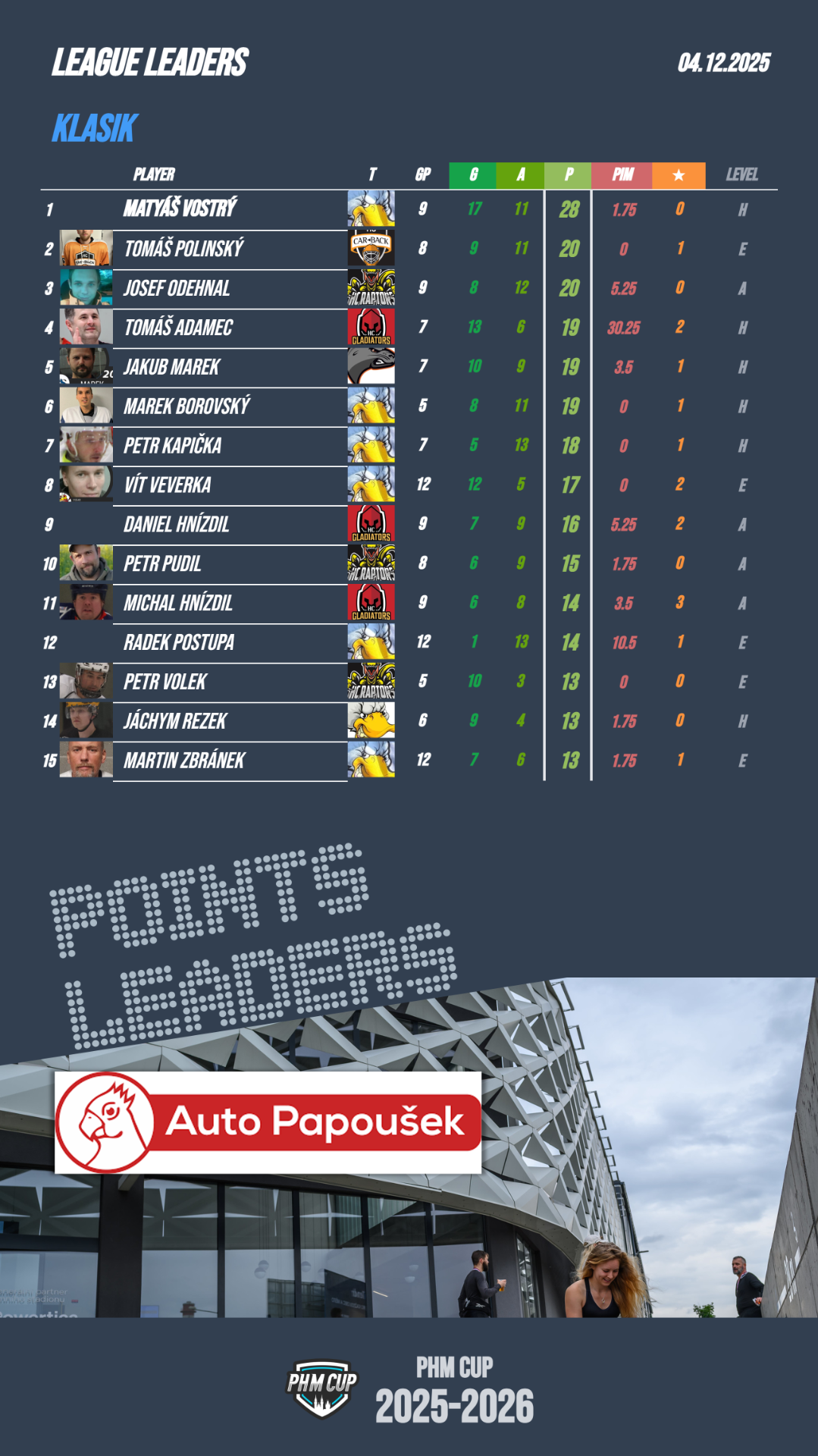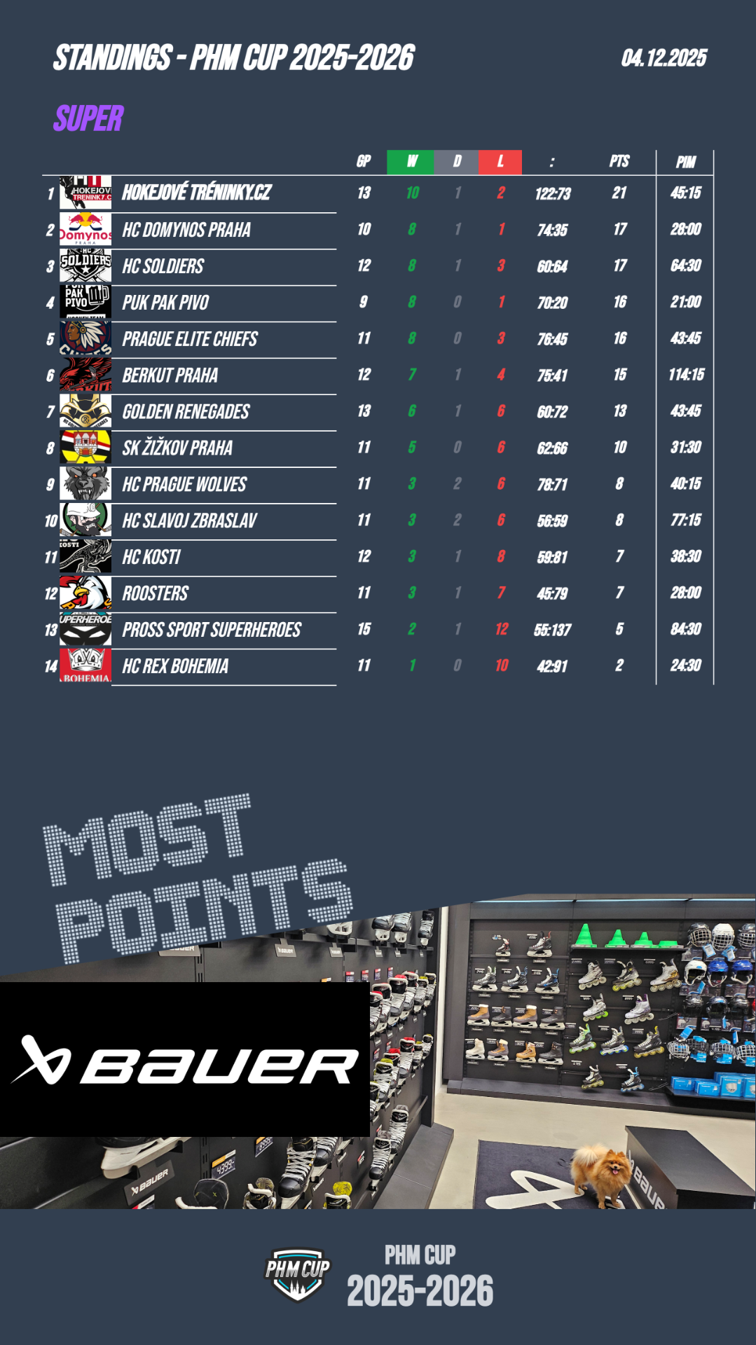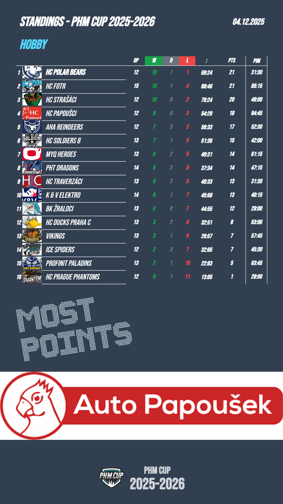 Prosinec začal ve velkém stylu a s ním i další porce zápasů v PHM Cupu. Týmy vstoupily do nového měsíce naplno a na ledě bylo znát, že před vánoční pauzou chce každý vytěžit maximum. Nechyběly zajímavé výsledky, překvapení ani výkony, které ovlivnily rozložení sil napříč divizemi.
