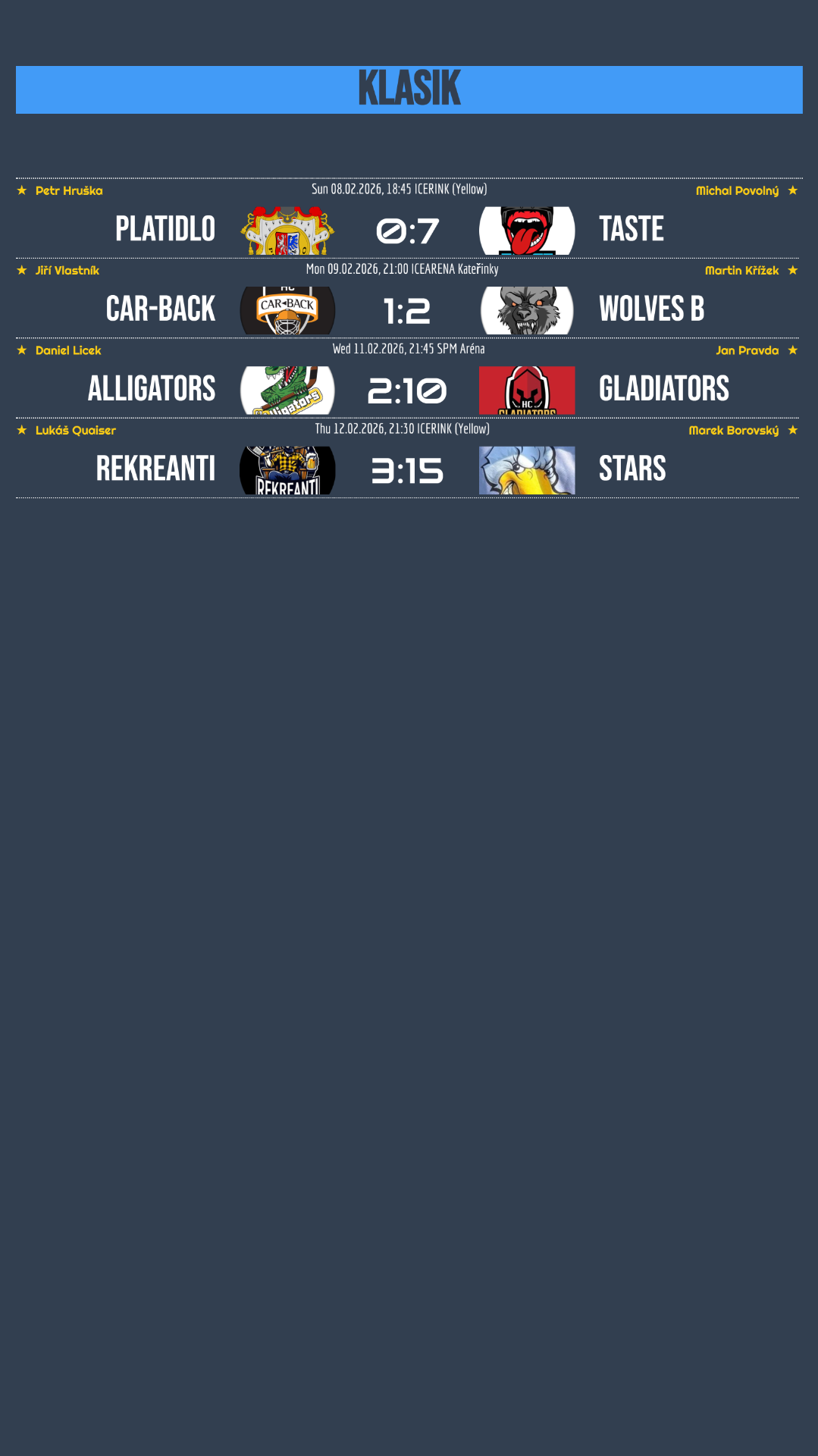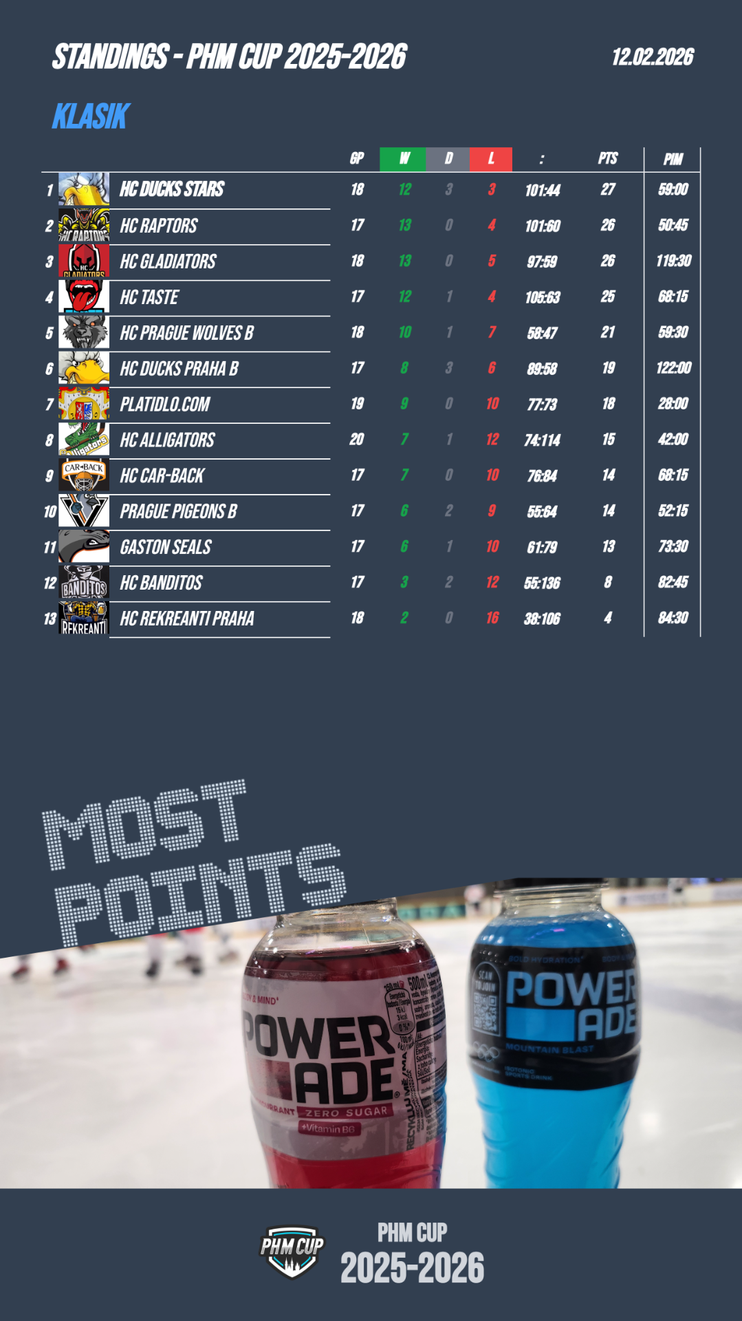 Brankář Taste se blýskl čistým kontem proti Platidlu a jeho tým zvítězil jednoznačně 7:0. Neméně suverénní výkon předvedli také Gladiators, kteří svého soupeře zasypali deseti góly a potvrdili svou střeleckou formu. Ještě větší kanonádu rozpoutali Ducks Stars, kteří nasázeli soupeři dokonce 15 branek a s naprostým přehledem si pojistili první místo v tabulce! Jediné skutečně vyrovnané utkání týdne nabídlo střetnutí mezi Car-Back a Wolves B. V napínavém souboji nakonec uspěli hráči Wolves, kteří si odnesli cenné vítězství.