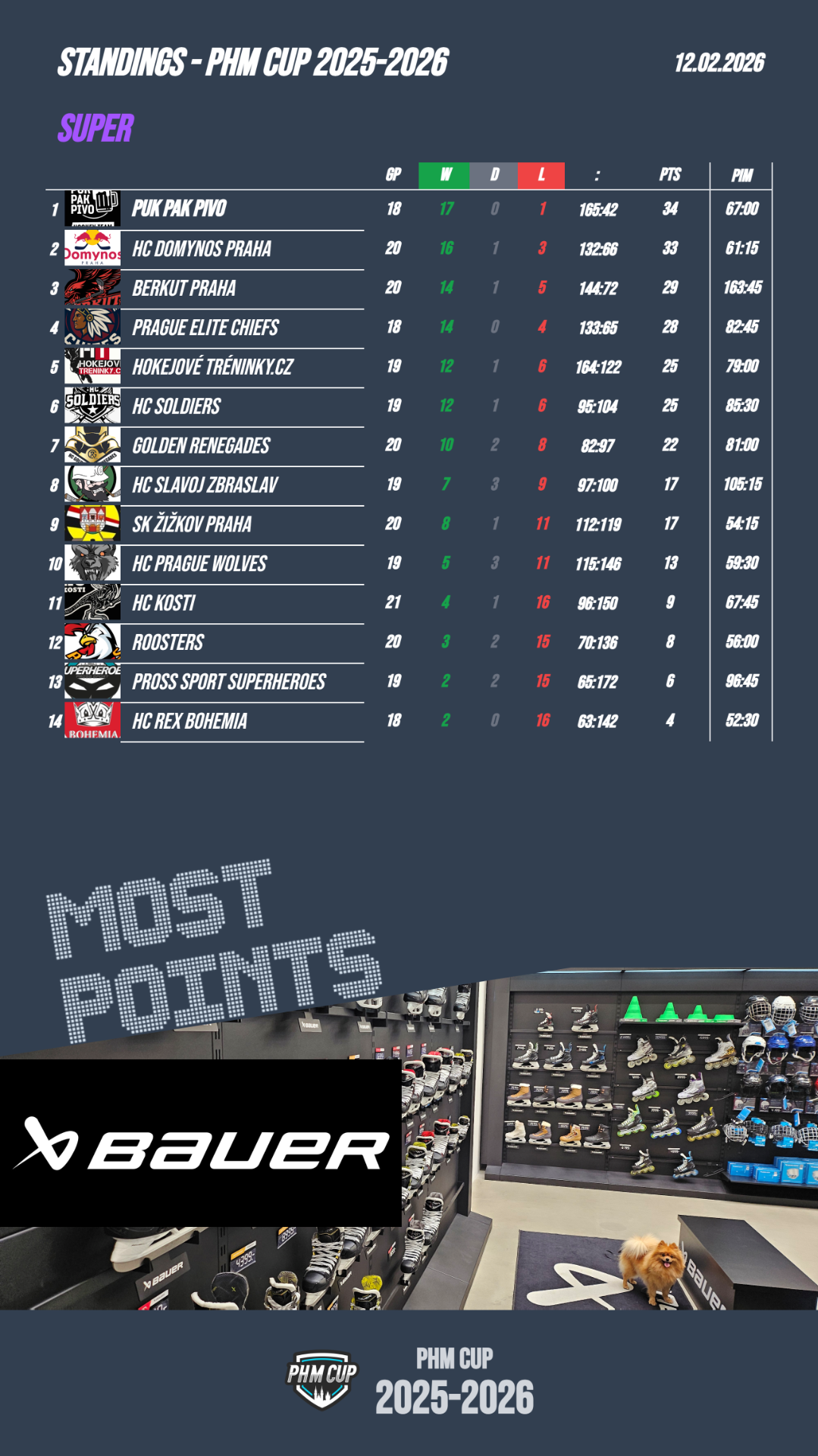 Renegades navázali na předchozí vítězná utkání a poradili si s Kostí, ve druhém zápase týdne ale pouze remizovali se Žižkovem. Právě Kosti si po porážce s Renegades spravili chuť, když po osmi prohrách v řadě konečně zabrali a výhrou nad REX si připsali velmi potřebné body! Konec vítězné série zažil Berkut, který po sedmi výhrách v řadě tentokrát vyšel naprázdno. O všechny body jej připravil silný Domynos, jenž tak znovu potvrdil své ambice! PUK PAK PIVO ukázalo svou sílu i v oslabené sestavě, když i s pouhými osmi hráči do pole dokázalo přetlačit Wolves a připsat si další vítězství. Ofenzivní koncert předvedli Prague Elite Chiefs, kteří Roosters zasypali deseti góly a jasně ukázali svou střeleckou formu.