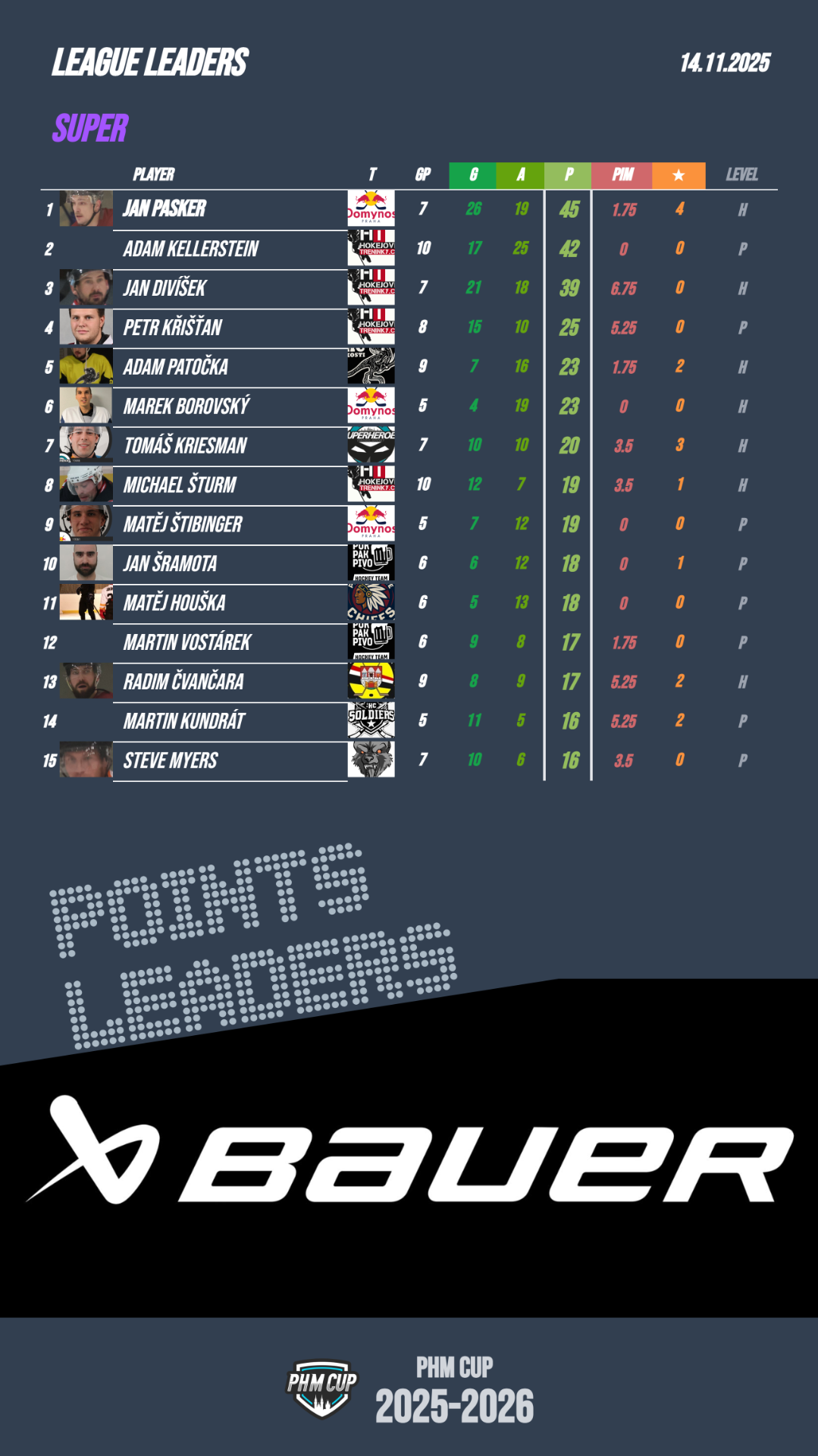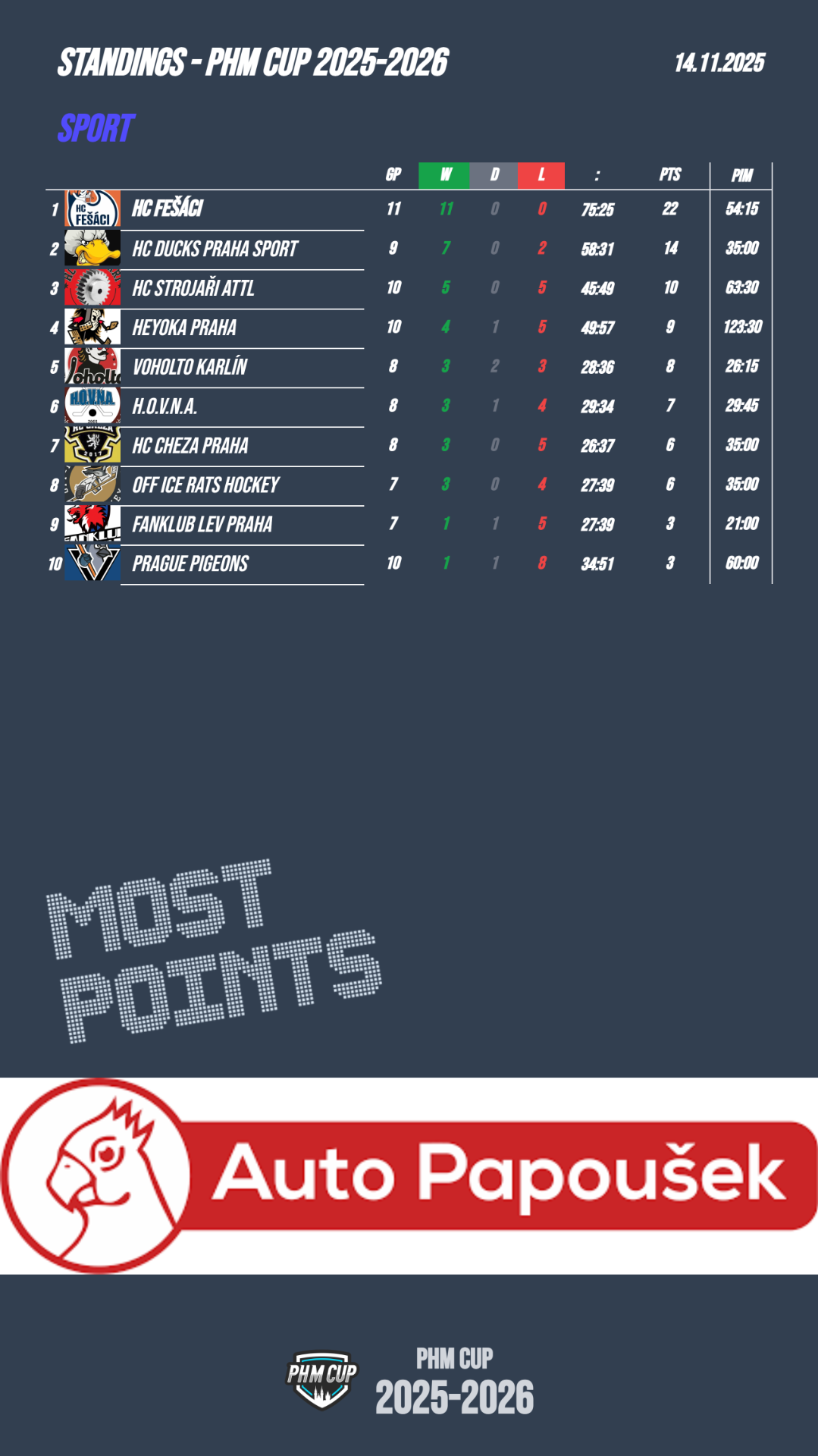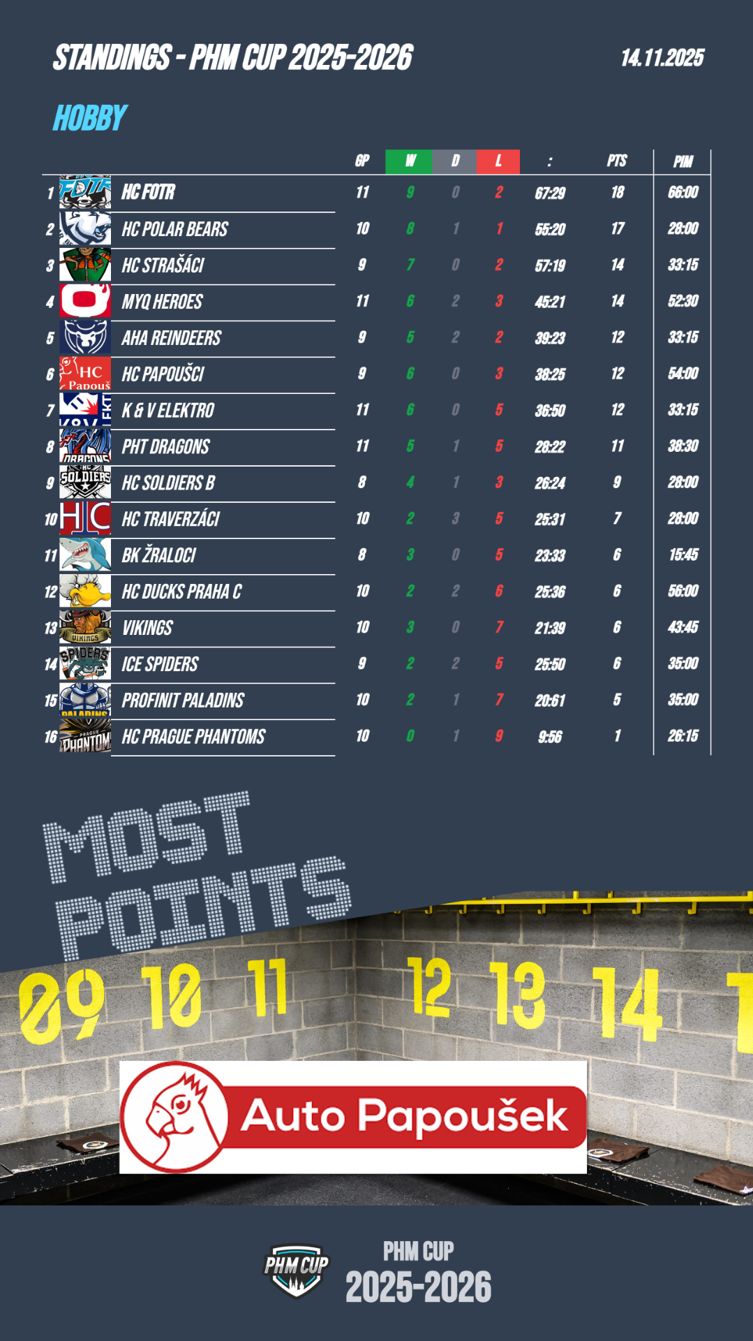 Druhý listopadový týden PHM Cupu je za námi a opět přinesl spoustu napínavých momentů i přesvědčivých výkonů. Týmy předvedly skvělou spolupráci a chtíč po vítězství. Dominantní výkony některých hráčů ukázaly, že i jednotlivci mohou zápas velmi rychle ovlivnit a dodat týmu potřebnou energii.
