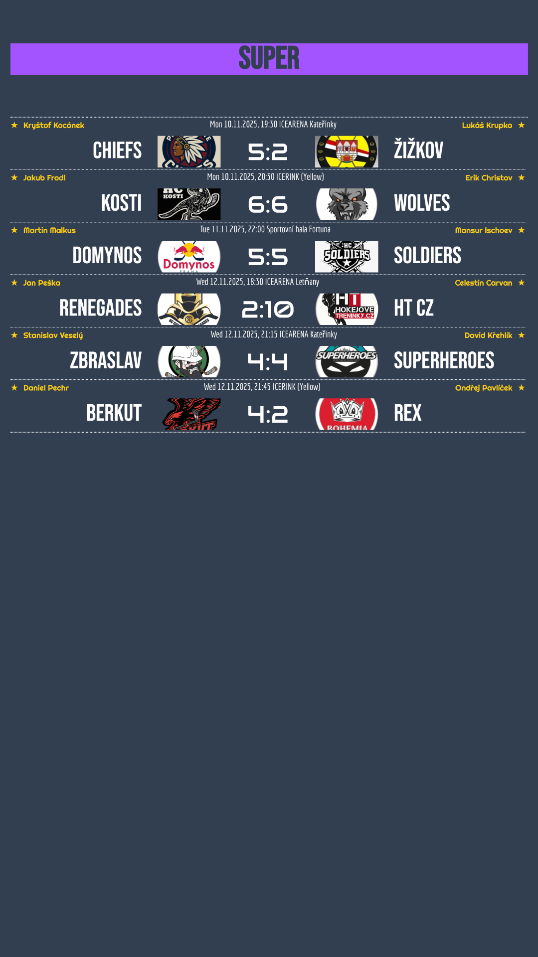 V Super divizi se tento týden odehrálo 6 zápasů, z nichž hned 3 skončily remízou, což jasně ukazuje, jak je divize vyrovnaná. Ve středu tabulky je boj opravdu napínavý a každý bod může rozhodovat o posunu směrem nahoru či dolů. Favorité si ale udrželi svou kvalitu a potvrdili své výkony. Je zřejmé, že i nadále budou určovat tempo divize a každý zápas proti nim je výzvou