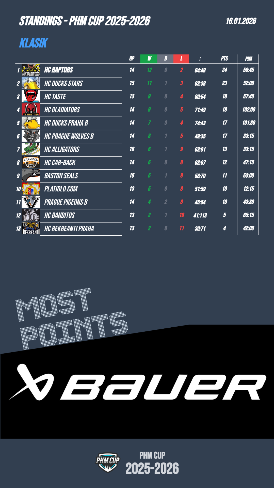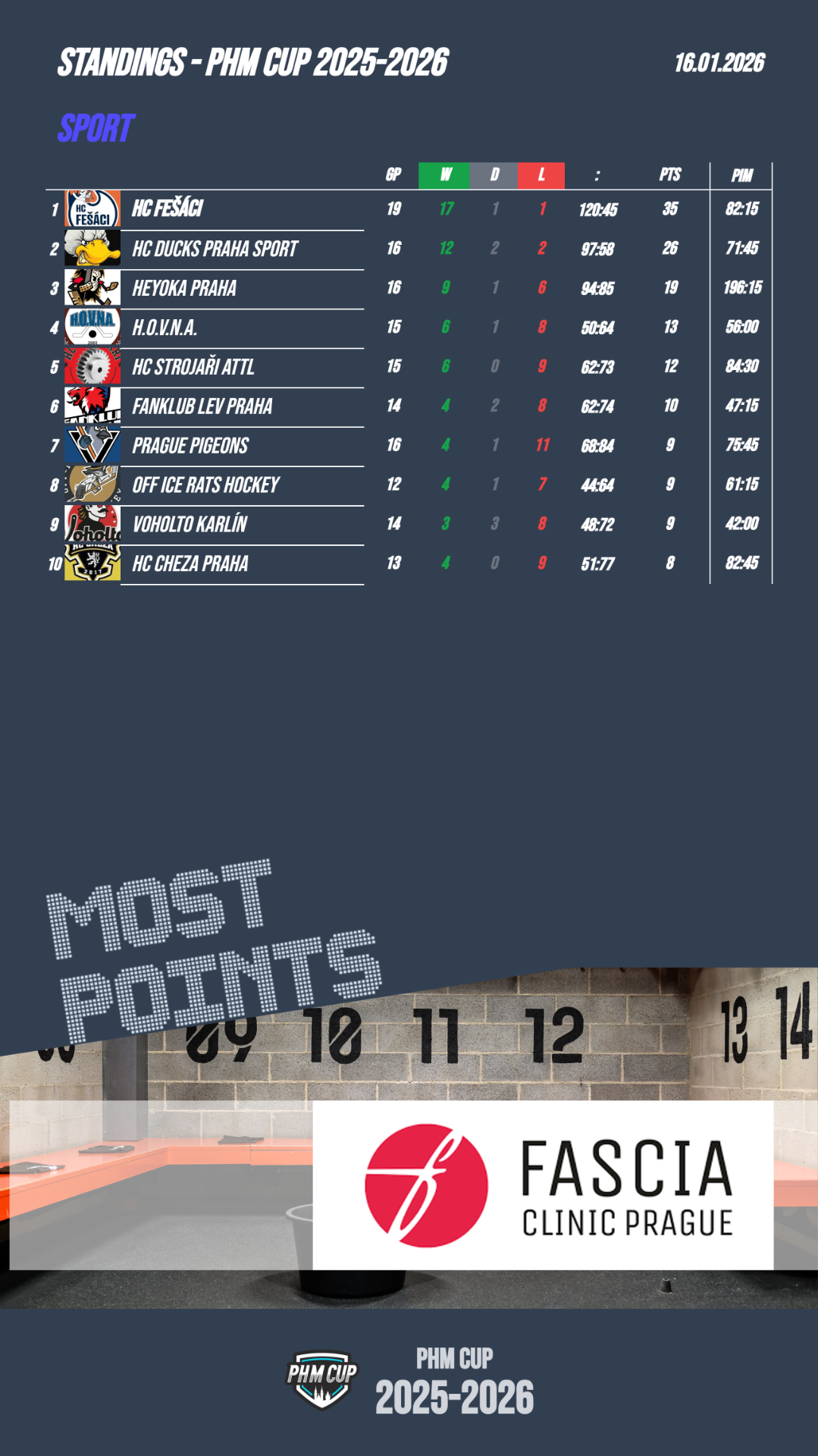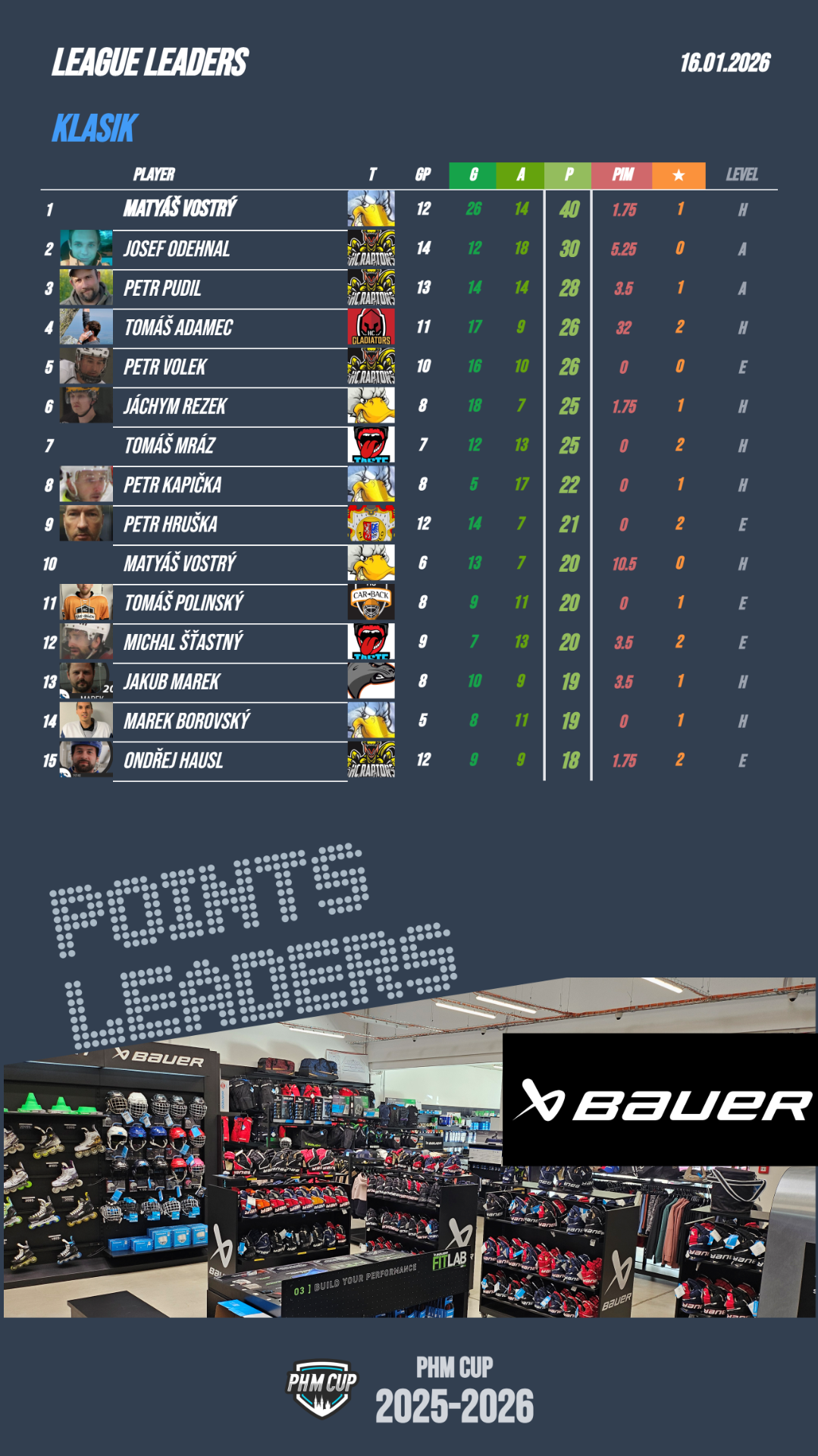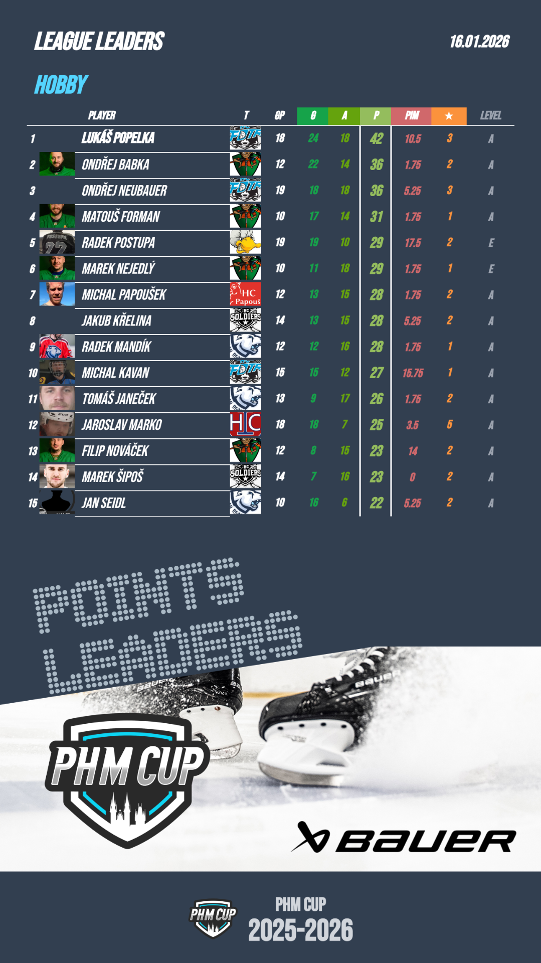 Druhý hrací týden v novém roce je za námi a PHM Cup pomalu, ale jistě míří ke konci základní části. Zápasy tak začínají nabírat na důležitosti, protože každý bod může v konečném účtování rozhodovat o postavení v tabulce i o samotném postupu. Přestože se sezóna přehoupla do své další fáze, stále není nic rozhodnuté. Tabulky jsou vyrovnané, formy týmů kolísají a boj o každou příčku zůstává otevřený napříč všemi divizemi!