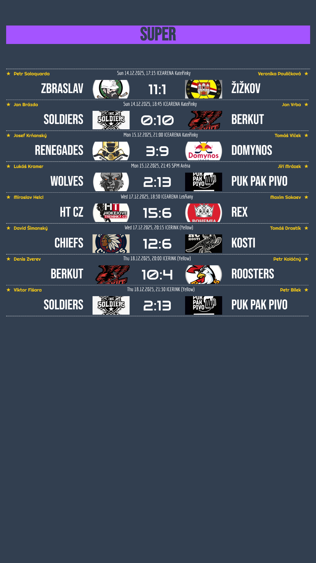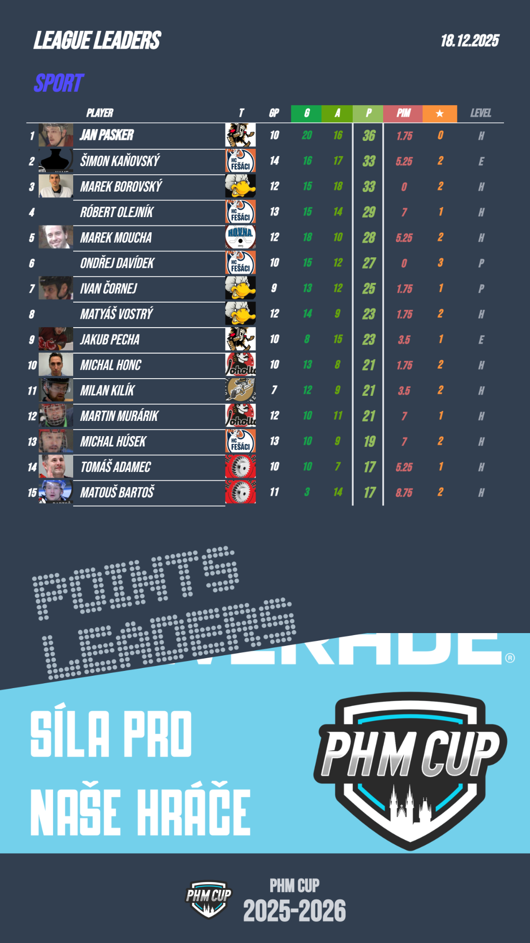 Máme za sebou poslední hrací týden v roce 2025! Týmy do něj šly s jasným cílem, zakončit rok co nejlépe. Bylo k vidění mnoho gólových přestřelek, každý chtěl odejít s dobrým pocitem a ideálně i s výhodnou pozicí do dalšího pokračování soutěže! V tomto shrnutí se podíváme nejen na konečné výsledky, ale také na to, jak vypadá aktuální pořadí v individuálních statistikách jednotlivých divizí!