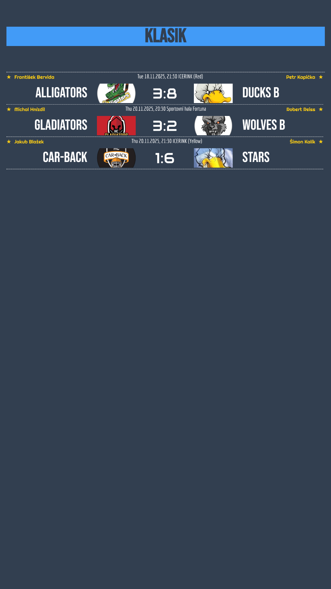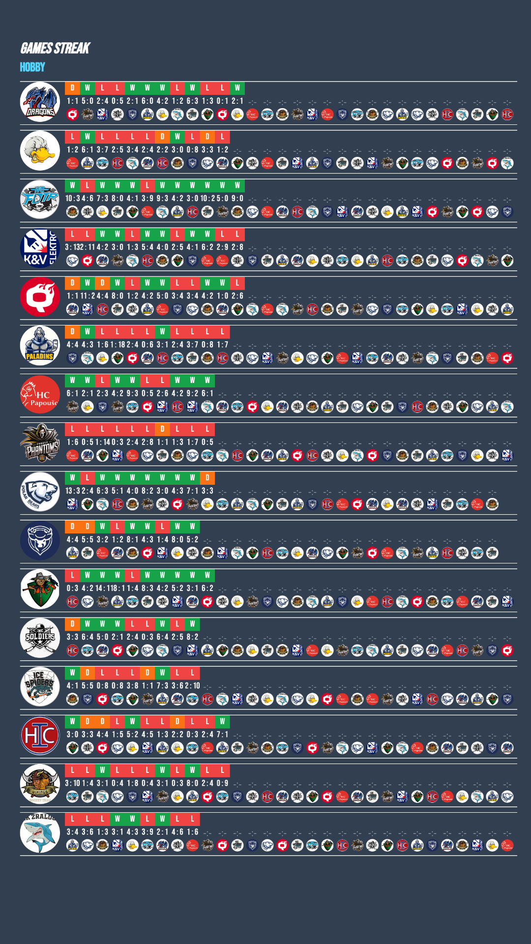 Oba týmy HC Ducks si připsaly klidná vítězství, která jim zajistila důležité body bez větších komplikací. Ve velmi vyrovnané bitvě se nakonec podařilo uspět týmu HC Gladiators, který dokázal ustát tlak hostujícího týmu v závěrečných minutách utkání.