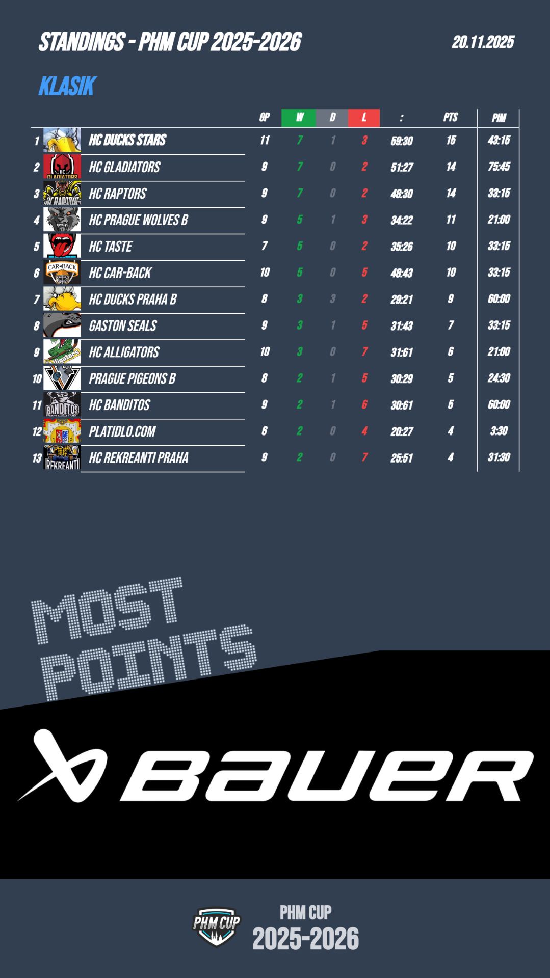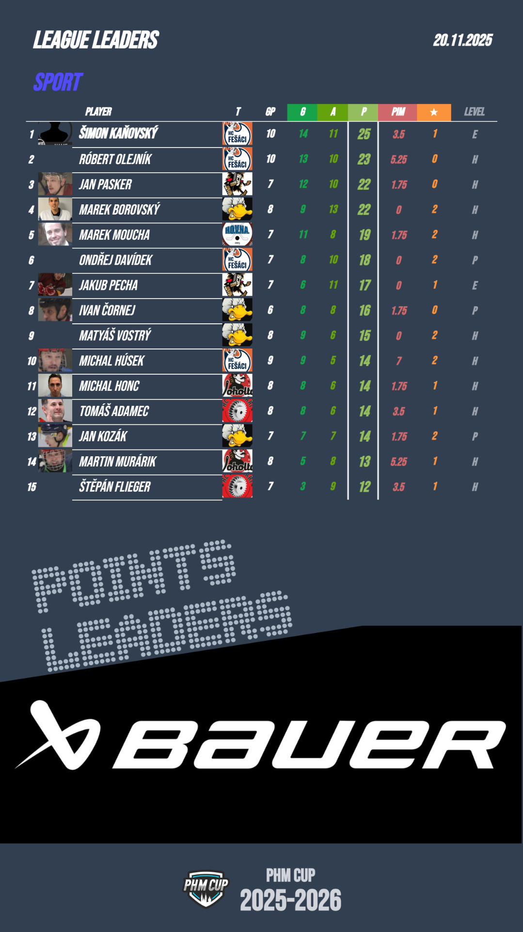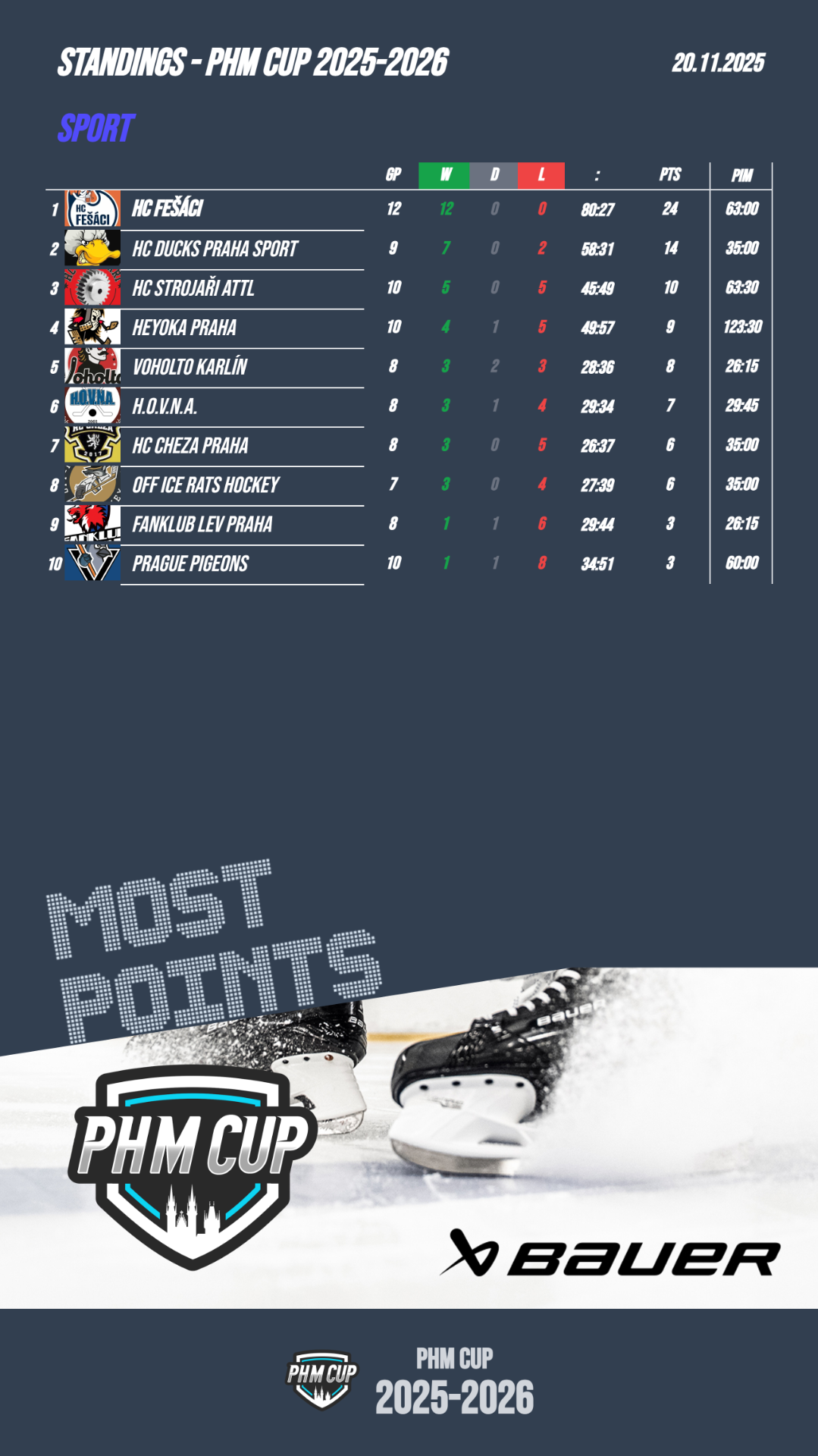 Máme za sebou třetí listopadový týden, který nabídl menší porci zápasů. V neděli se tentokrát nehrálo a ani v pondělí kvůli státnímu svátku. Do akce se tak týmy dostaly až v úterý, středu a čtvrtek. Během těchto tří dnů stihl PHM Cup nabídnout dostatek hokeje, zajímavých výsledků i momentů, které ovlivnily dění v jednotlivých divizí.