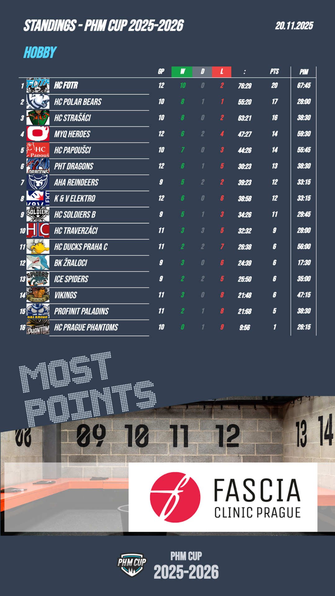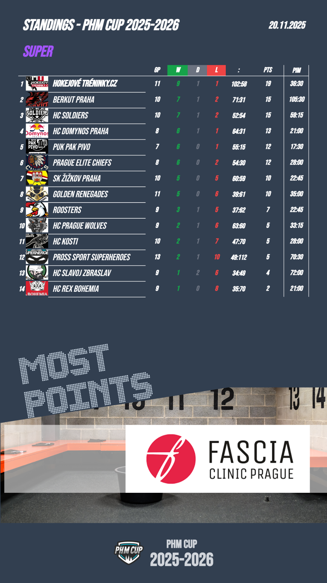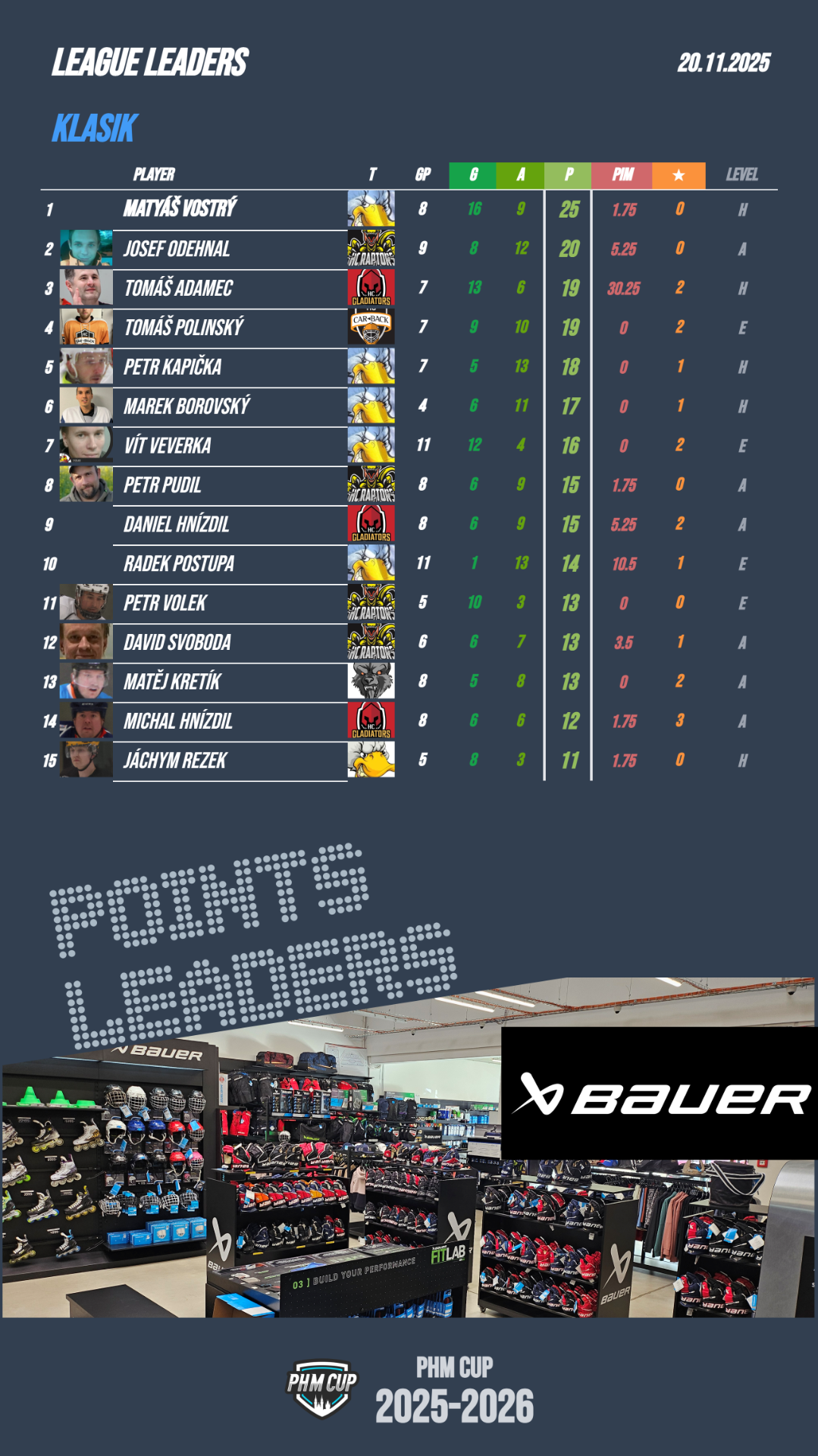 Máme za sebou třetí listopadový týden, který nabídl menší porci zápasů. V neděli se tentokrát nehrálo a ani v pondělí kvůli státnímu svátku. Do akce se tak týmy dostaly až v úterý, středu a čtvrtek. Během těchto tří dnů stihl PHM Cup nabídnout dostatek hokeje, zajímavých výsledků i momentů, které ovlivnily dění v jednotlivých divizí.