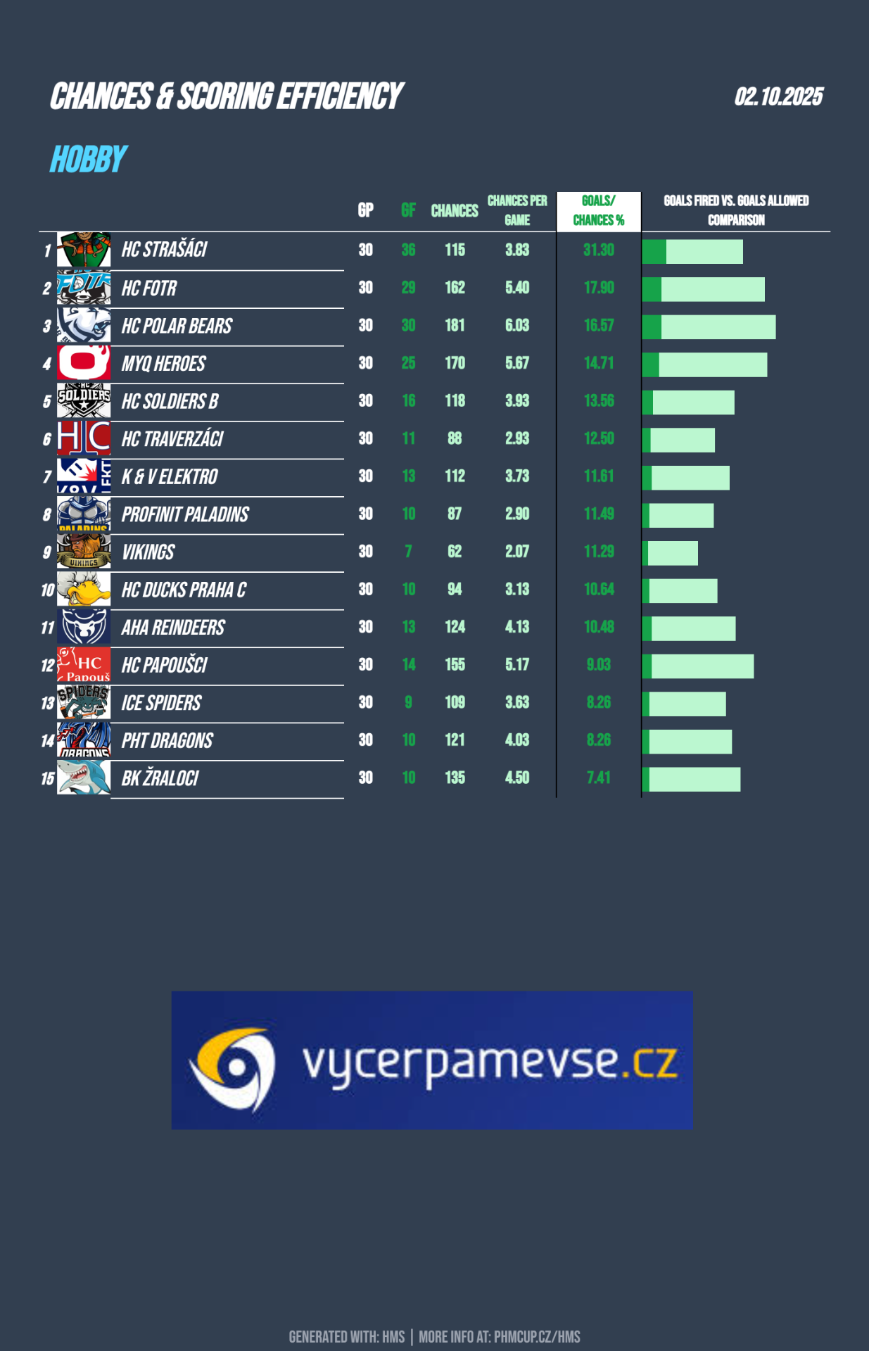 Strašáci zatím totálně odstřelení v této statistice ale Fotr nebo Polars také nepotřebují na gol až tak mnoho šancí.