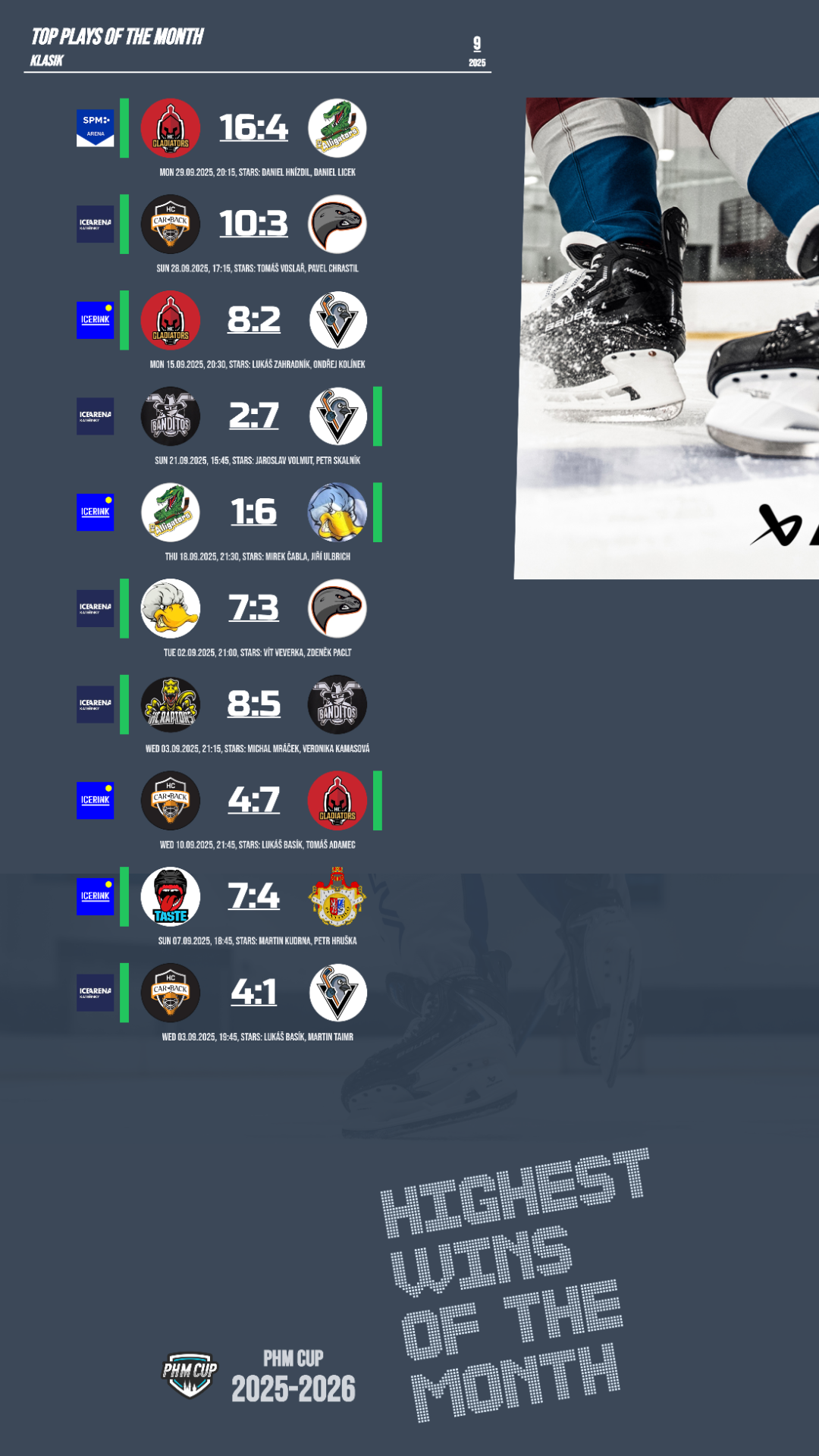 Shrnutí statistik za měsíc září, tak celkových pozicí týmů i hráčů v hlavních ukazatelích na konci předešlého měsíce.
