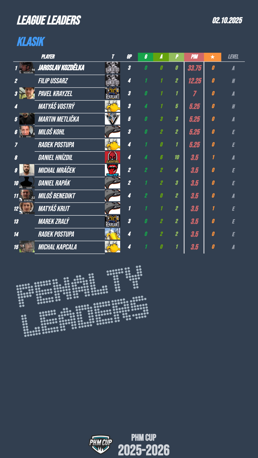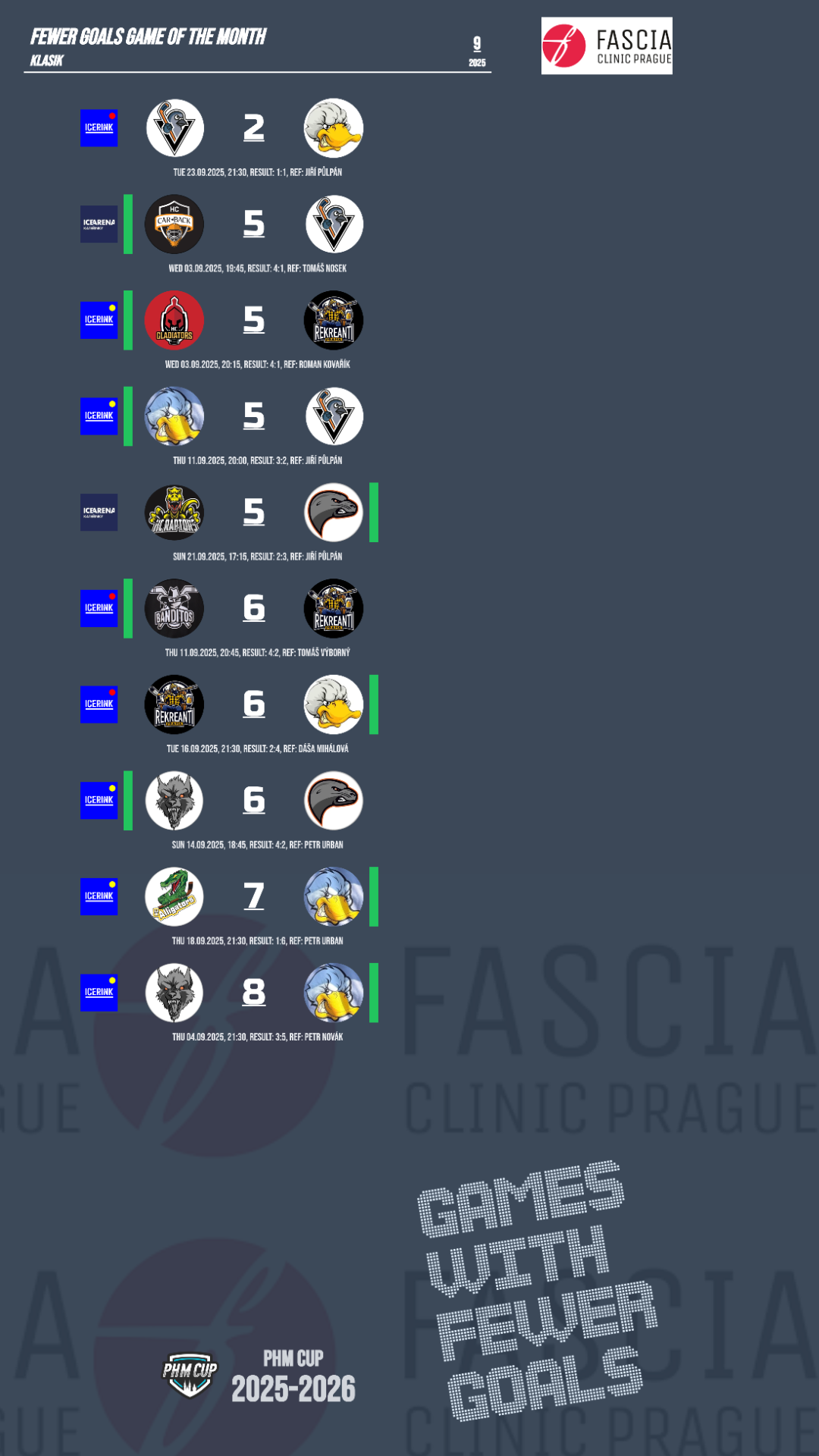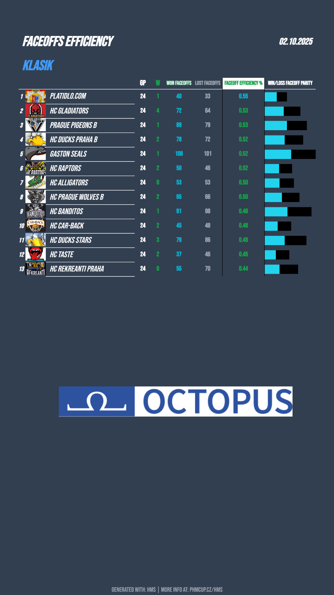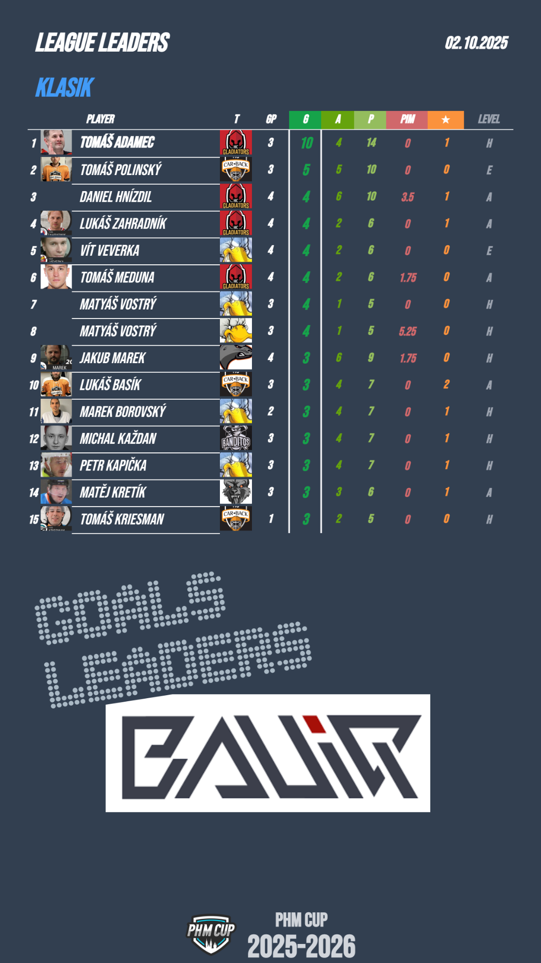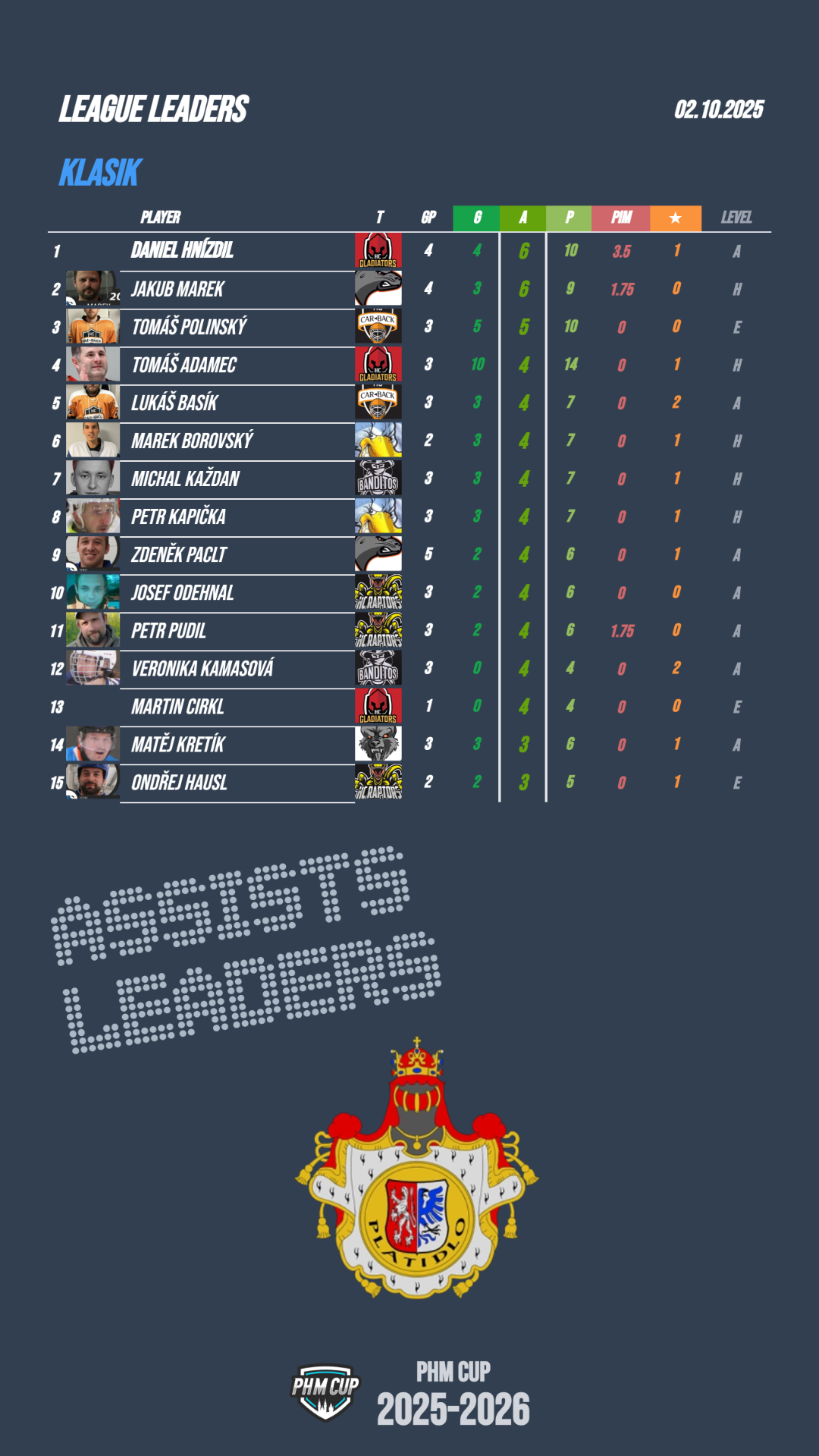 HC Gladiators vlétli do sezony jako tank – čtyři zápasy, čtyři výhry, 8 bodů. Skvělý start má i Ducks Stars, kteří mají o jednu výhru méně. Zajímavé bude sledovat Taste, který má 100% bilanci, ale zatím odehrál jen dva zápasy. Na opačném konci tabulky se krčí Rekreanti a Alligators, zatím bez bodu.